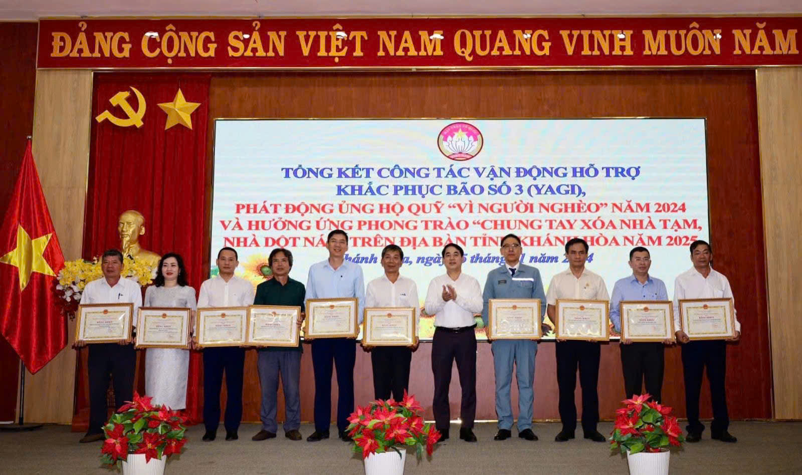 Ngày 15/11, UBMTTQ Việt Nam tỉnh Khánh Hòa tổ chức tổng kết công tác vận động hỗ trợ khắc phục bão số 3 và lễ phát động ủng hộ Quỹ “Vì người nghèo” năm 2024 và hưởng ứng Phong trào thi đua “Chung tay xóa nhà tạm, nhà dột nát trên địa bàn tỉnh Khánh Hòa năm 2025”.